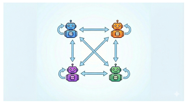 All roles are assigned symmetrically across models in a round-robin design.
