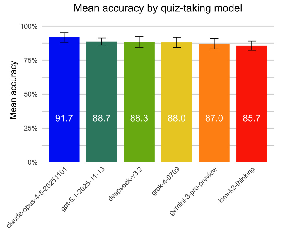 Figure 2. No significant difference in quiz-taking accuracy was found between frontier models.